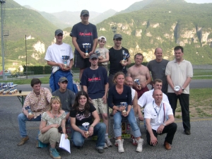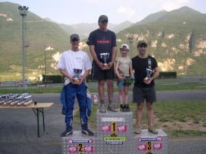 Sotto un sole e un calore torride, abbiamo effettuato la prima gara del trofeo Italia... Due nuovi piloti francesi Rémy Métaldi e Frédéric Miguet hanno fatto il loro battema in telaio carbonio TTI sul territorio italiano ed eranno felici della sportività italiana e francese di questa categoria TTI carbonio. Rémy Métaldi Frédéric Miguet Tutti i piloti eranno mano a mano per poter far la loro passione ed essere insieme sulla pista. Congratulazioni ai piloti Christophe Vernet vincitore di questa prima gara italiana che aveva come concorrenti di taglia Paolo Simonetti, Clément Hermitte, Tony Anzalone ed Ilaria Lambi che si battevano tutti per il primo posto. Senza dimenticare il giovane pilota Samuele Rubino che li seguivano da molto vicino. Clément Hermitte - La giocchezza non impedisce di essere serio e di ottenere buoni risultati... Samuele Rubino con Simonetti Paolo sfortunati durante la finale accompagnano il vincitore Christophe Vernet. Belle prestazione del pilota Tony Anzalone che ha saputo oltrepassare tutte le trappole e salire sulla terza scala del Podium. Abbiamo potuto vedere la battaglia feminile tra Giulietta Romoli ed Ilaria Lambi, vinta da Giulietta Romoli, Congratulazioni a tutti due ! Lambi Ilaria Romoli Giulietta Sorriso e Convivialità del pilota Eugenio Melli che apparentamente gli è piaciuto questo fine di settimana di gara. Eugenio Melli ed il suo meccanico Mancanza di fortuna per Christian Weintz che, sfortunatamente, le gomme si sono sgonfiate due volte. Grande sfortuna per il pilota Viero Paolo che ha avuto qualche problemi meccanici. Questa prima gara si è svolta in una buona atmosfera... Alcuni souvenir :