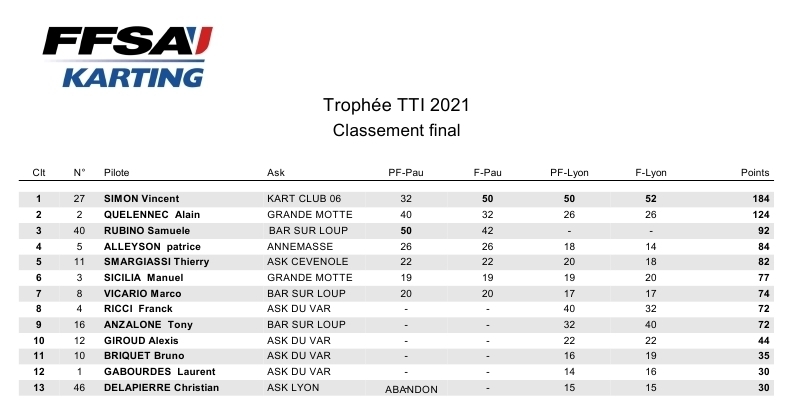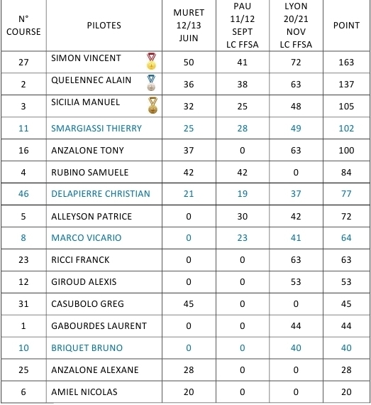 CLASSEMENT FRANCE LONG CIRCUIT FFSA - 2 EPREUVES