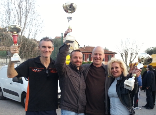 Pour débuter l'année dans une ambiance conviviale et de manière différente, la catégorie TTI répondue présente à l'ASK BTP pour participer à cette 8ème édition de course de côte de Falicon. Malheureusement, ce type d'épreuve qui fait connaitre notre sport à de nombreux spectateurs, tend à disparaitre tout comme les citadines (compte tenu des coût d'organisation, cahier des charges de plus en plus draconien) et c'est pourquoi, nous tenions véritablement à être présent. Ce n'est pas sans surprise que nous avons vu les pilotes TTI obtenir des résultats éloquents pour leur premier banc d'essai dans ce genre d'épreuve, parmi des pilotes KZ avertis avec gomme très tendre. Très beau résultat de Gabourdes Laurent qui prend la 1ère place TTI et la 5ème position au scratch suivi de très près par Quelennec Alain 3ème TTI et 8ème scratch et qui sur une monte prend également la 5ème position au scratch. Notre féminine Angelini Fabienne qui n'ayant jamais roulée sur une citadine ou course de côte arrive à se hisser également dans le top 7/8 au scratch de chaque monte et prend la 2ème place TTI. Notons la belle performance de Dellerba Fabrice qui prend la 12 place au scratch et 4ème TTI (ancien habitué des courses de côte en voiture) en bagarre avec Brussey Noel 5ème TTI et 16ème au scratch qui fut également 12ème lors d'une monte au scratch...bravo...