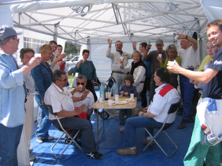 du trophée TTI CARBONE et les officiels FFSA sous le châpiteau du Team