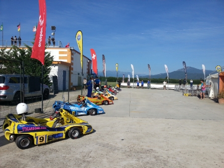 Très bon weekend sur ce superbe circuit de Busca en ITALIE avec une chaleur avoisinant les 40° et une piste gommée ce qui ne rendait pas la tâche facile aux pilotes. Dès le début des essais libres et la course 1, une bagarre acharnée se laissait entrevoir entre les pilotes Bucceri Franco, pôle man, vainqueur de la course 1 et 2, l'Espagnol Lopez Prats Marc, Anzalone Tony, Ciais Stéphanne, Bucceri Joseph et l'italien Arioni Alessandro. Effectivement, en finale on assiste à une lutte entre tous ces pilotes pour obtenir le podium. Lopez Prats Marc 1er, rèussi à tenir tête à Franco très menaçant. Ce dernier était pourchassé par Tony Anzalone, qui sur une tentative de dépassement, permet au pilote Bucceri David, derrière aux aguets, de prendre cette superbe 2ème place. Tony sauvegardera sa 3ème place au détrimant de Bucceri Franco relégué à la 4ème position. Juste derrière, Bucceri Joseph s'emparre d'une belle 5ème place devant Ciais Stephane qui clôture ce top 6. Très belle performance pour Alleyson Patrice 7ème et Millo Jean Jacques 8ème. Une pensée pour le pilote Arioni Alessandro qui n'a pas pu participer à la finale pour des raisons administratives. Nous vous souhaitons à tous de très bonnes vacances et vous donnons rendez vous pour notre prochaine compétition le 26/27 août à CROIX EN TERNOIS