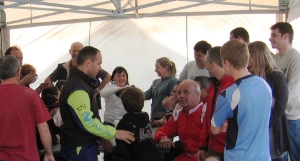 TOUS LES PILOTES SE SONT REUNIS DANS LA STRUCTURE TTI CARBONE RACING TEAM POUR LE TIRAGE AU SORT D'UN TRAIN 1/2 SLICK VEGA A GAGNER POUR LA COURSE AINSI QUE POUR FETER UN JOYEUX ANNIVERSAIRE A SEBASTIEN SICILIA DEVANT UN APERITIF