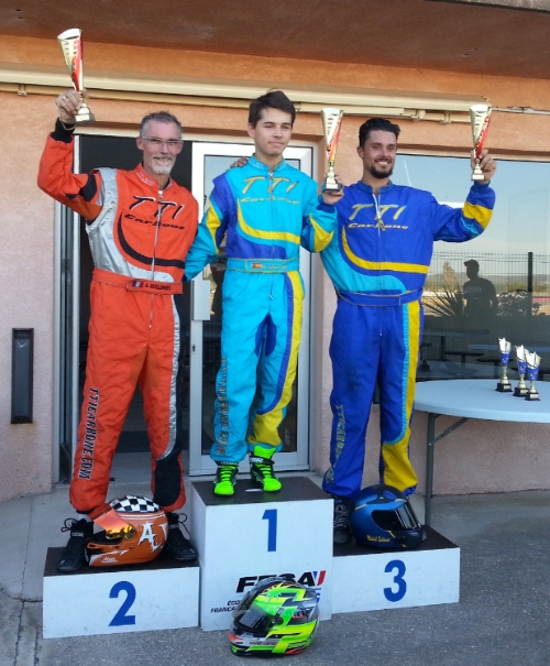 Très bon week end à Salon sur le circuit Mistral...belle performance de l'ensemble des pilotes et du podium composé de Lopez Prats Marc vainqueur et Poleman suivi de Quelennec Alain 2ème et Quelennec Michael 3ème. Le pilote Bucceri Franco 2ème au chrono et en préfinale prendra la 4ème place après une lutte acharnée avec Quelennec Alain 2ème. Ricci Franck parti dernier en finale pour problème de radiateur se hissera en 5ème place. Et pour clôturer ce top 6 on retrouve Alleyson Patrice qui grimpe petit à petit dans les classements. Pas de chance pour Sicilia Manuel qui casse sa tringle de changement de vitesse dans le tour de chauffe de la finale alors qu'il se battait dans le top 6.