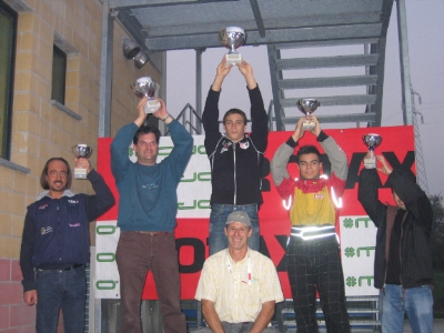 Cette dernière épreuve du Trophée ITALIE TTI CARBONE s'est déroulée dans une belle journée d'été indien. Belle victoire du pilote Christophe Vernet en bagarre permanente avec Maxime Bailleul, Pôle man de l'épreuve, qui abandonne en finale sur panne mécanique. Ceci ne lui permettera pas d'accéder au podium du Trophée Italie mais aura accumulé assez de points pour accèder à une superbe belle deuxième place du Trophée Europe. 1o VERNET Christophe La régularité du pilote Christophe Vernet tout au long des épreuves italiennes et européennes lui permettront d'atteindre les plus hautes marches des podiums des Trophées ITALIE et EUROPE TTI CARBONE. Paolo Viero, pilote italien, poffine ses réglages au fur et à mesure des manches pour atteindre la deuxième marche du podium de l'épreuve et accumule ainsi les points nécessaires pour obtenir une belle deuxième place du Trophée Italie TTI Carbone. 2o VIERO Paolo