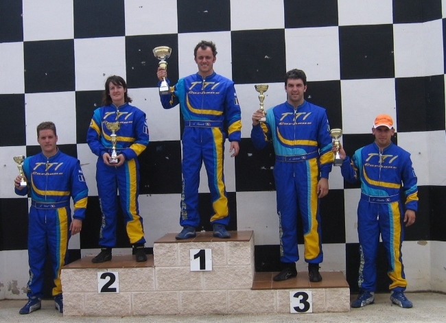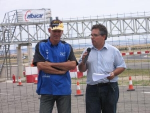M. PACO ARNAL, DIRECTEUR DU CIRCUIT INTERNATIONAL DE ZUERA, EN COMPAGNIE DE DOMINIQUE TIERCELIN, FELICITE LA PRESTATION DES PILOTES DE LA CATEGORIE TTI CARBONE.