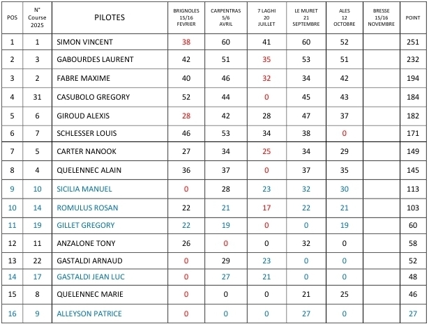 CLASSEMENT PROVISOIRE - AFFAIRE A SUIVRE SUR LA DERNIERE EPREUVE DE BRESSE