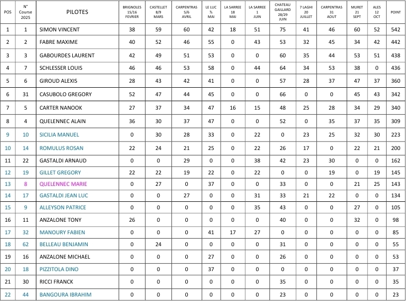 CLASSEMENT TROPHEE TTI 2025 PROVISOIRE